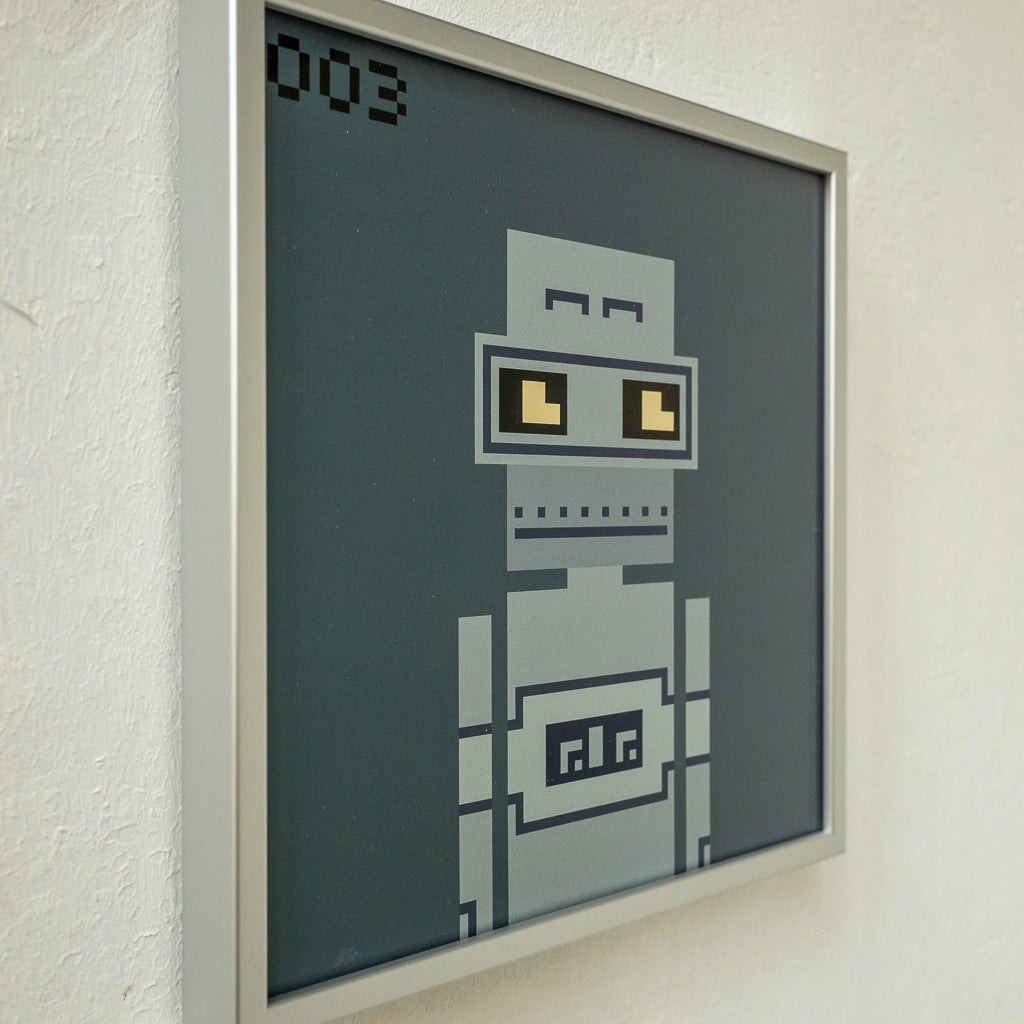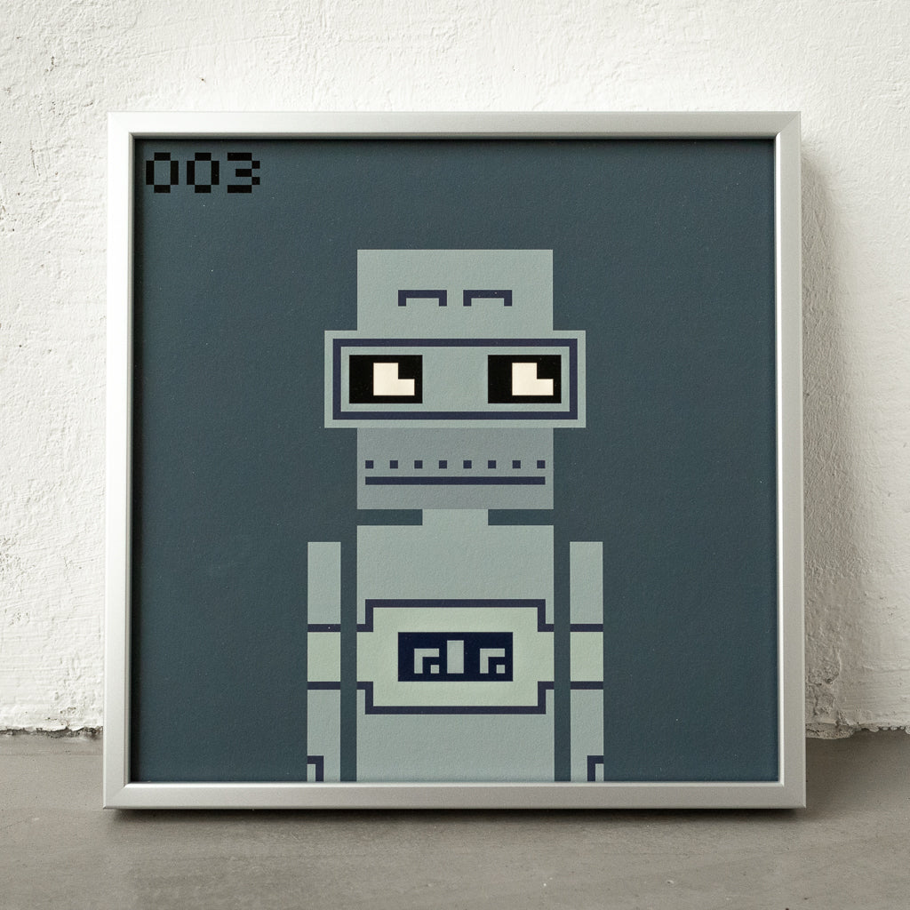 Framed pixel art print by eBoy, featuring Blockbob 003.