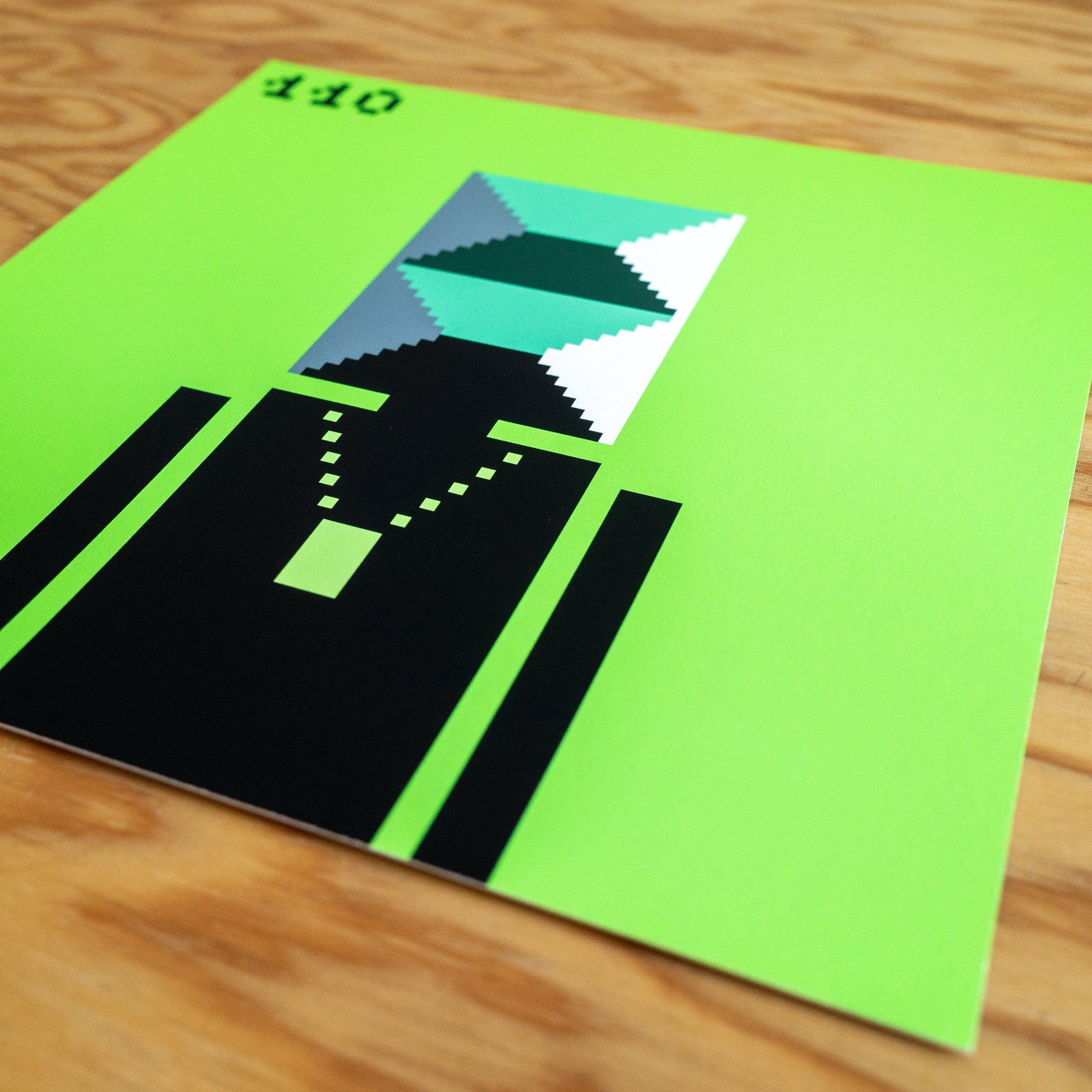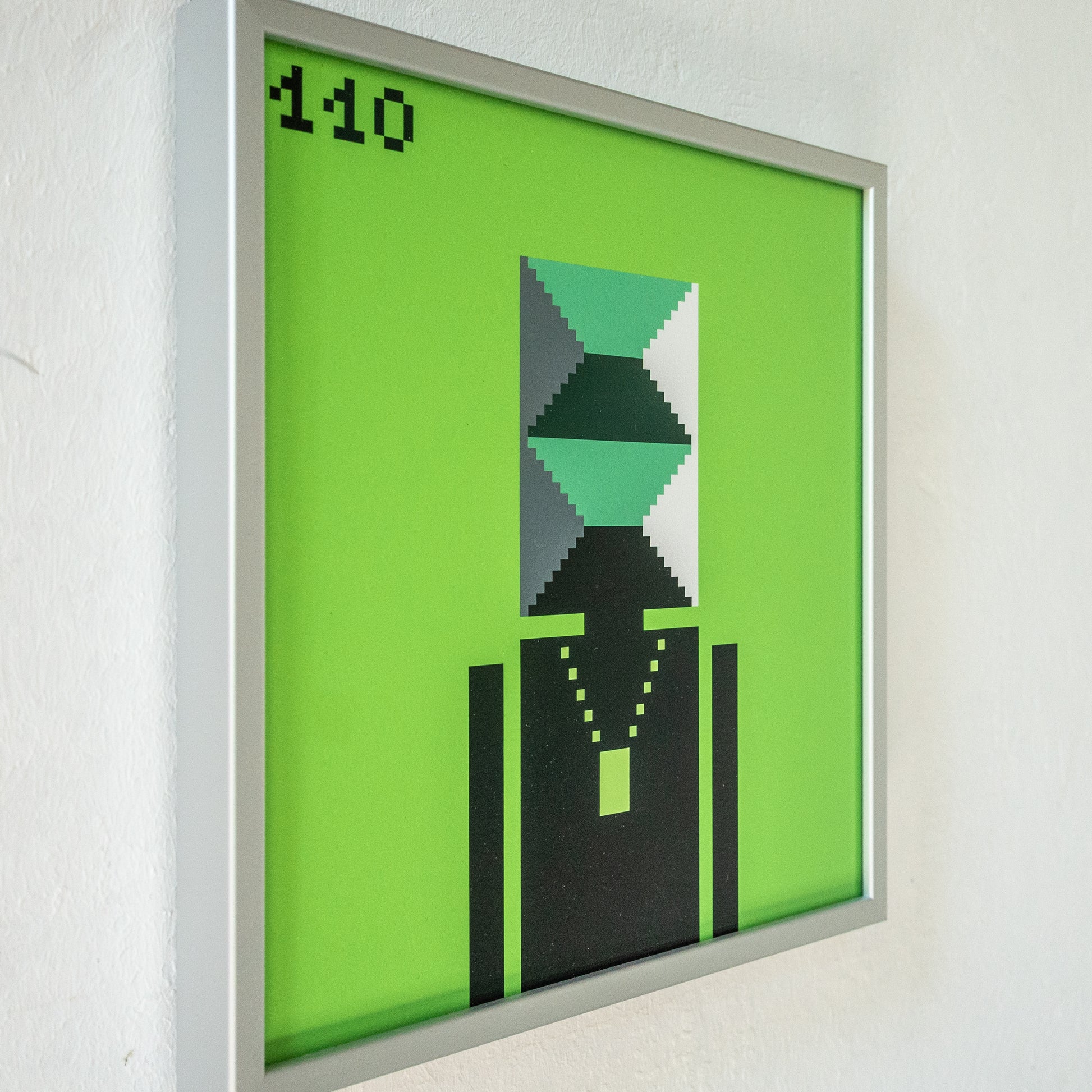 Framed pixel art print by eBoy, featuring Blockbob 110.