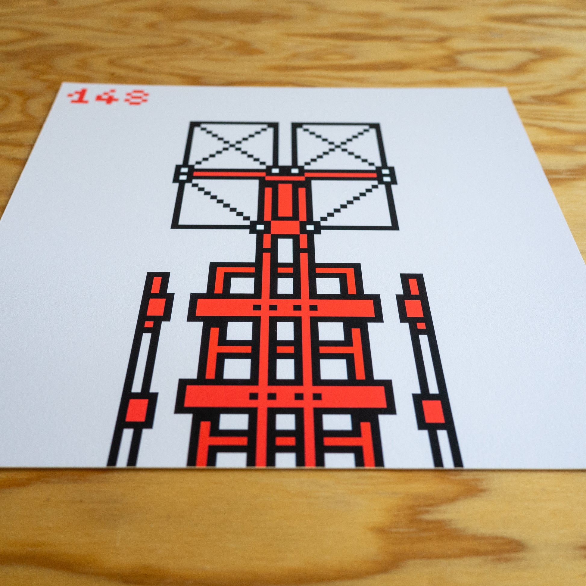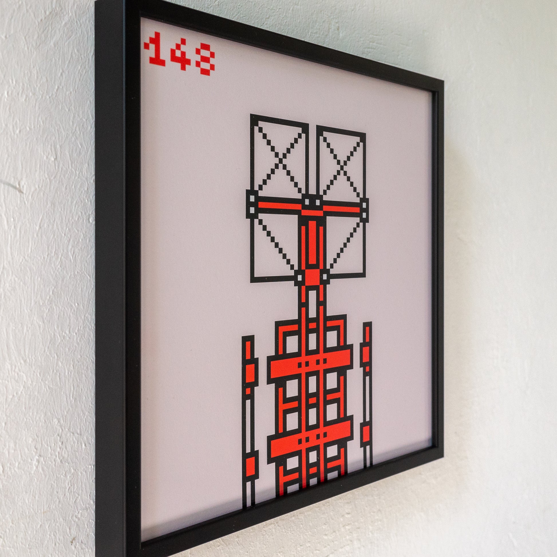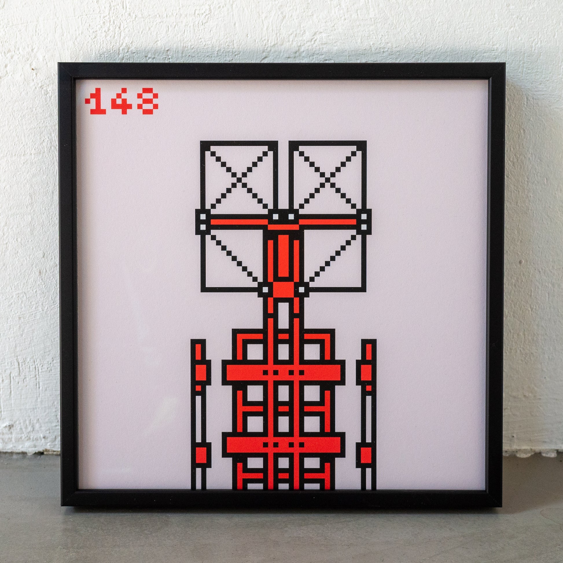 Framed pixel art print by eBoy, featuring Blockbob 148.