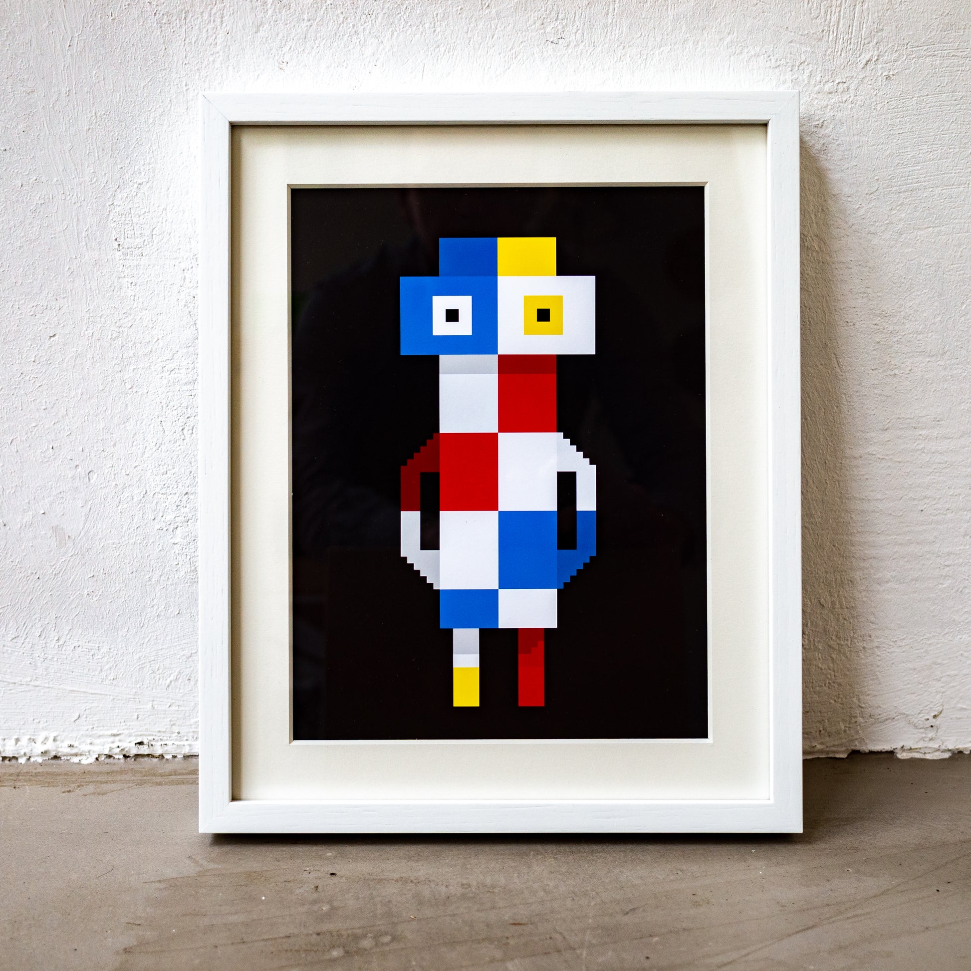 Framed pixel art print by eBoy, featuring Blockbob 'SquareAsF'.