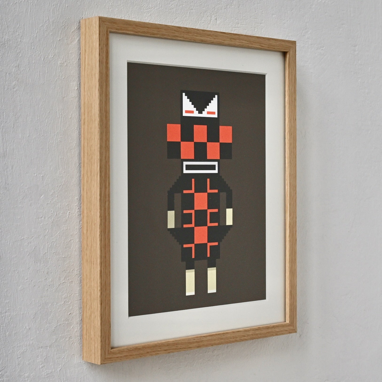 Framed pixel art print featuring 'Blockbob TGR' by eBoy.