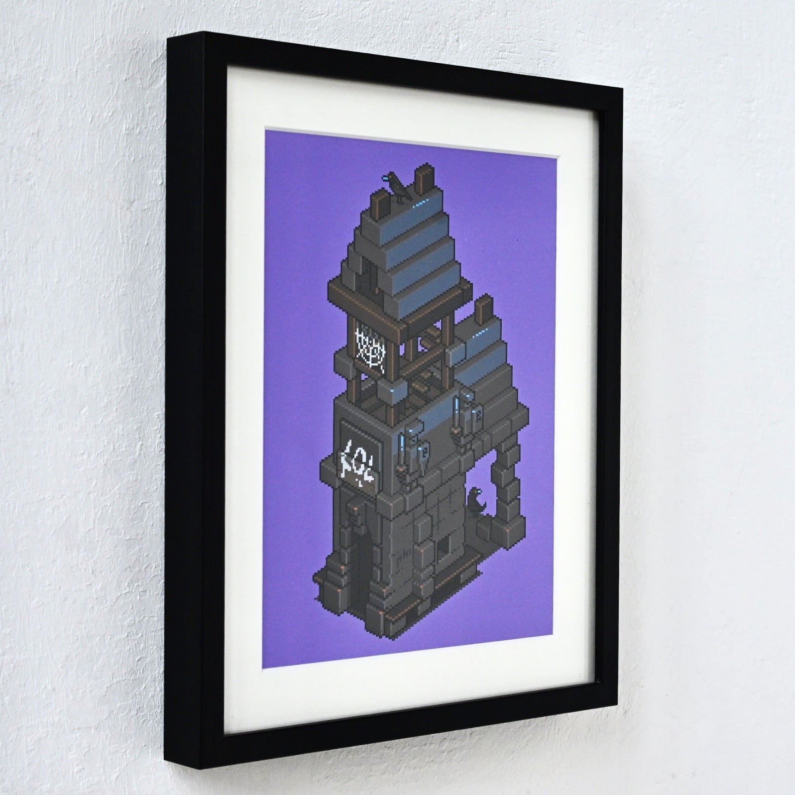 Framed pixel art print featuring 'ChurchOfLOL' by eBoy.