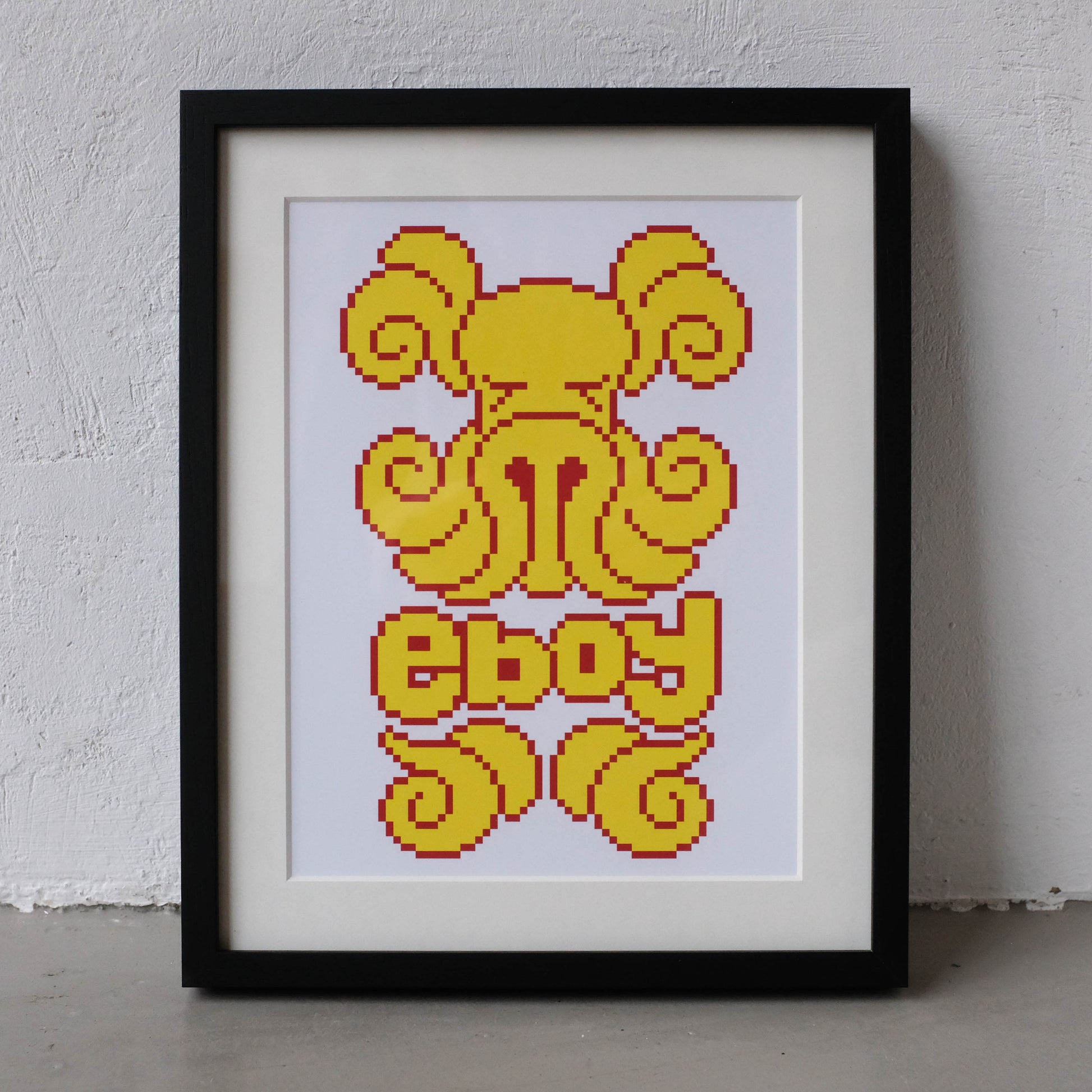 Framed pixel art print featuring the 'Moddd' crest by eBoy.