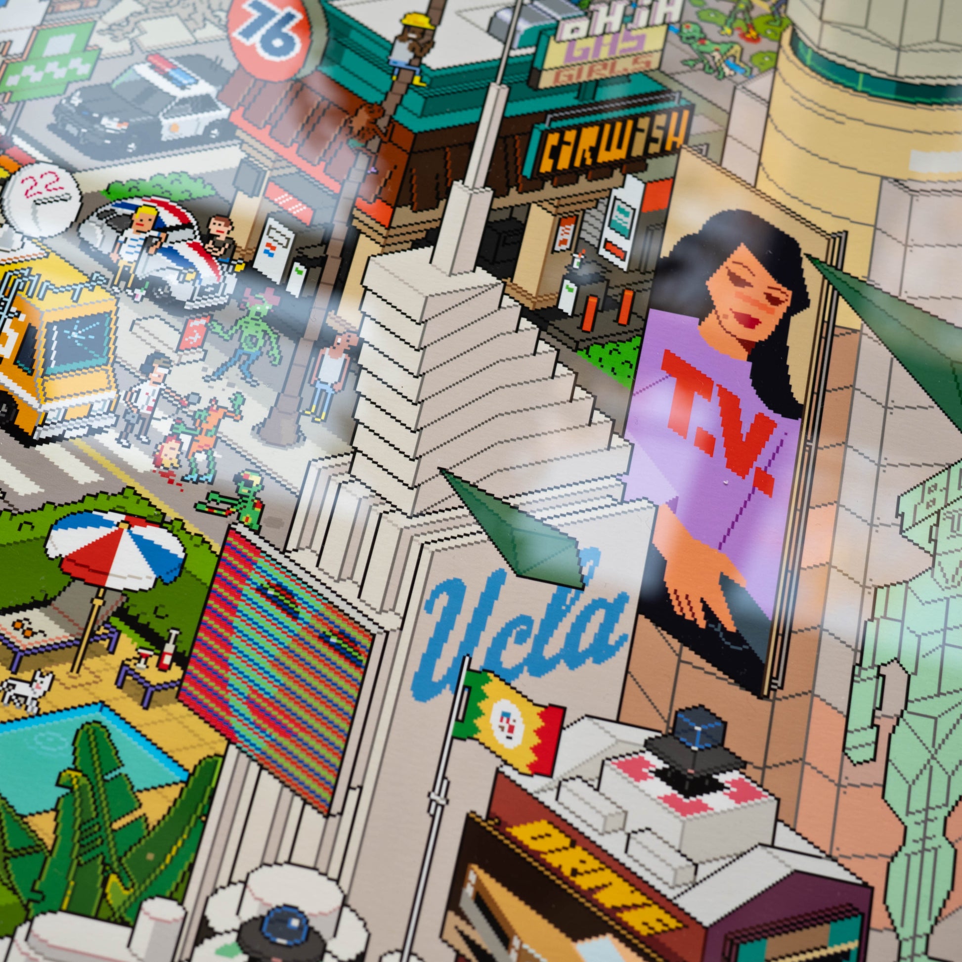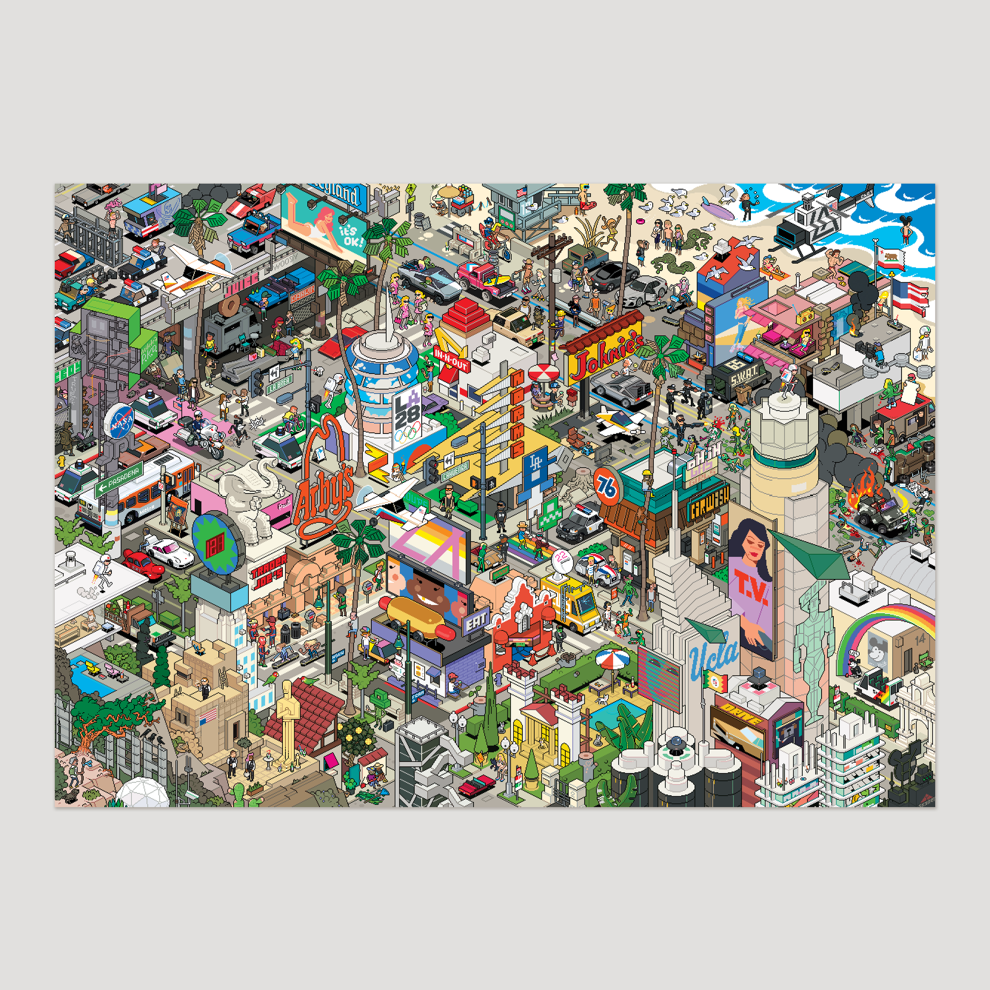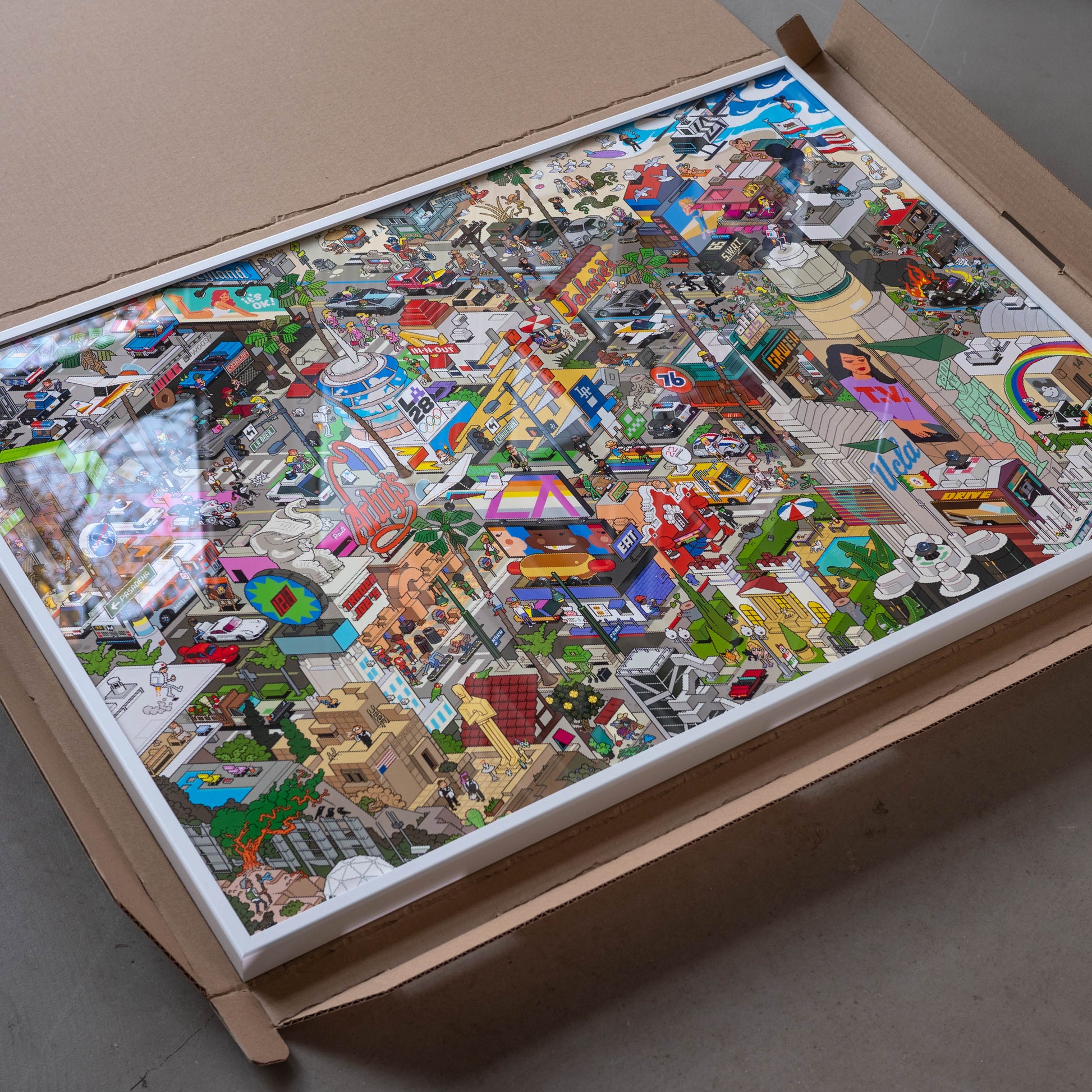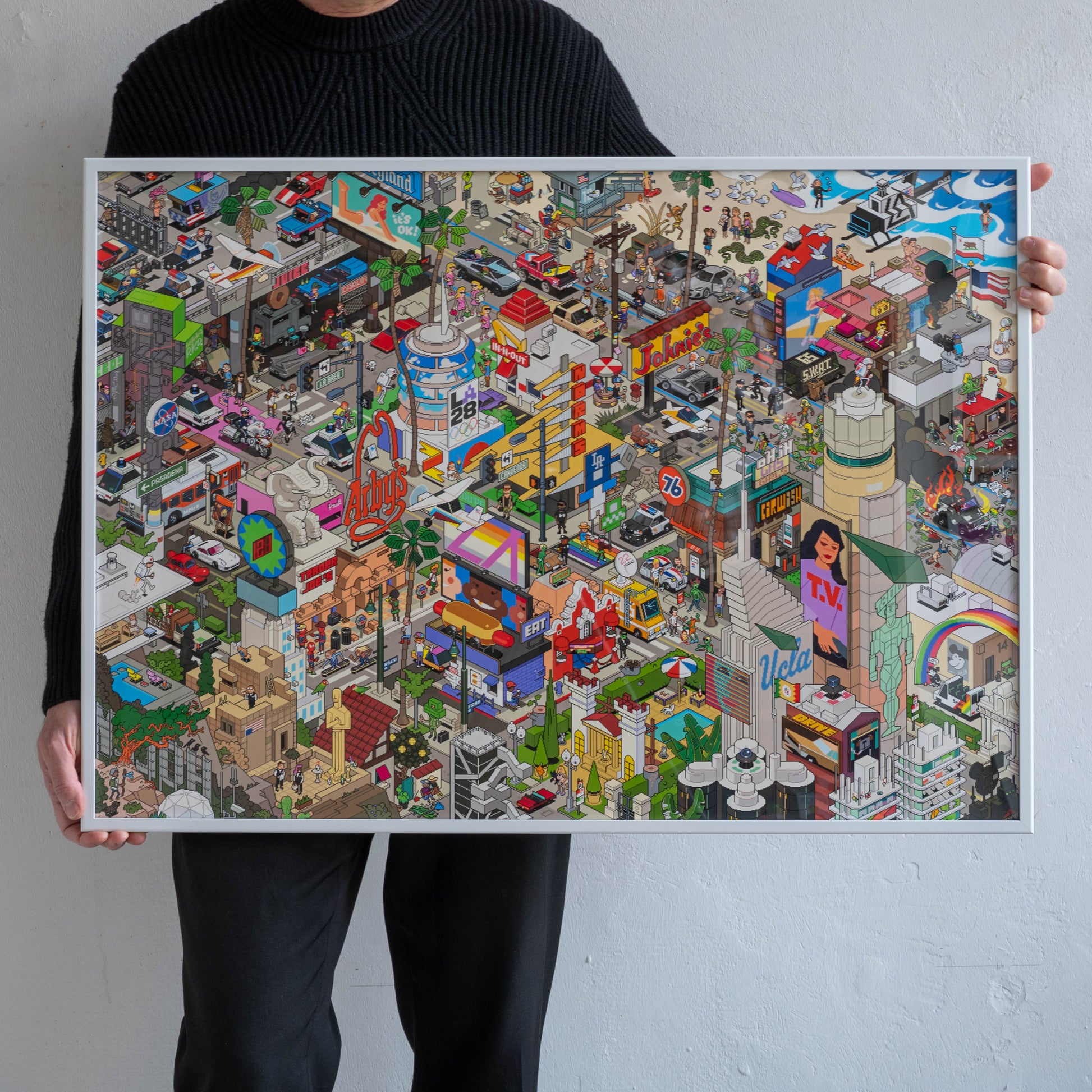 Signed and framed art print featuring the city of Los Angeles. This is a complete new version of Los Angeles. We call it the 'Hot Dog' edition, because why not.
