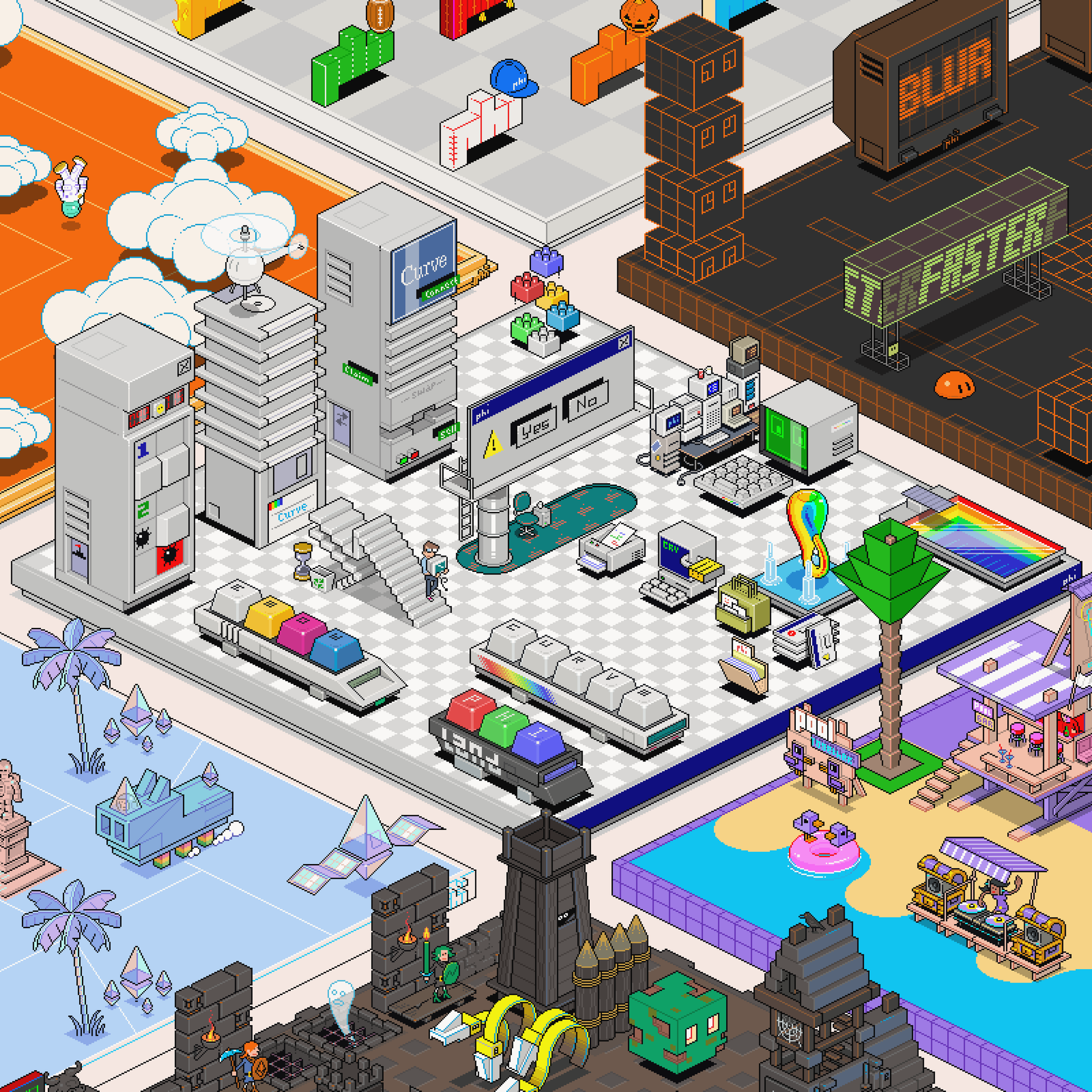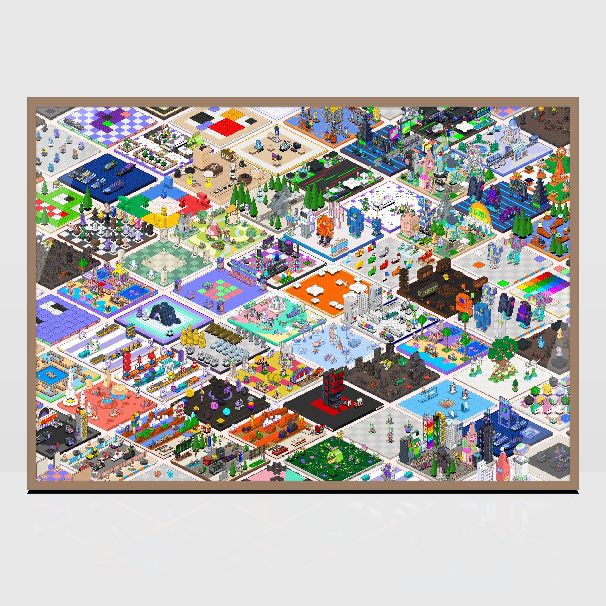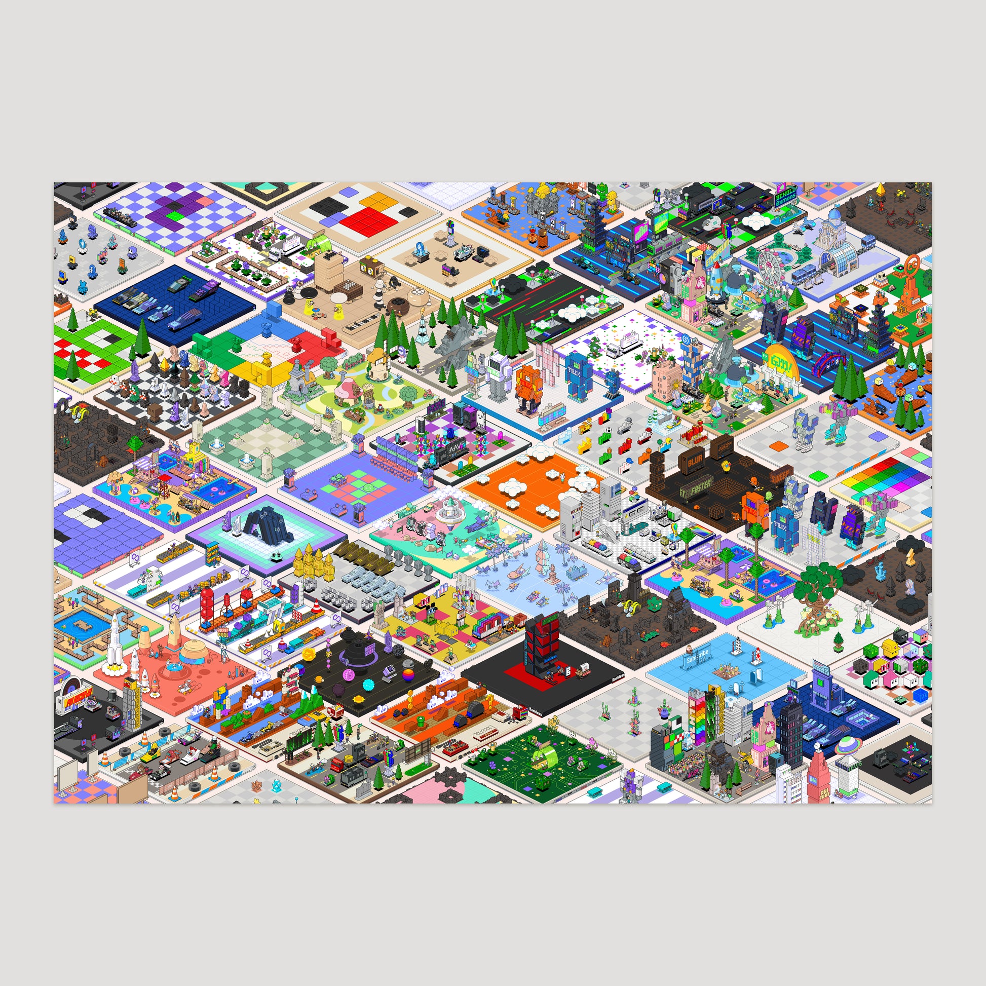Pixel art print by eBoy, featuring selected PHI lands.