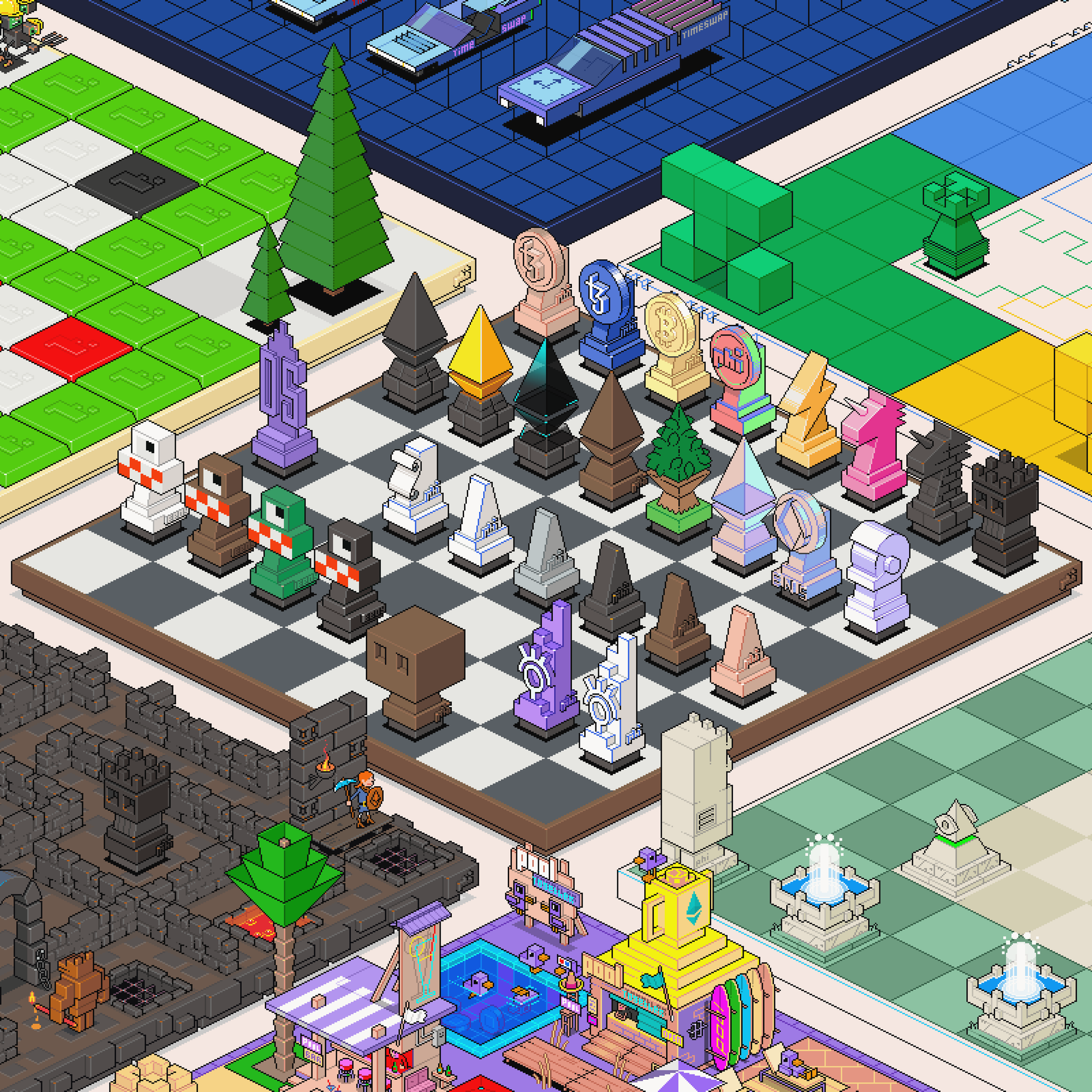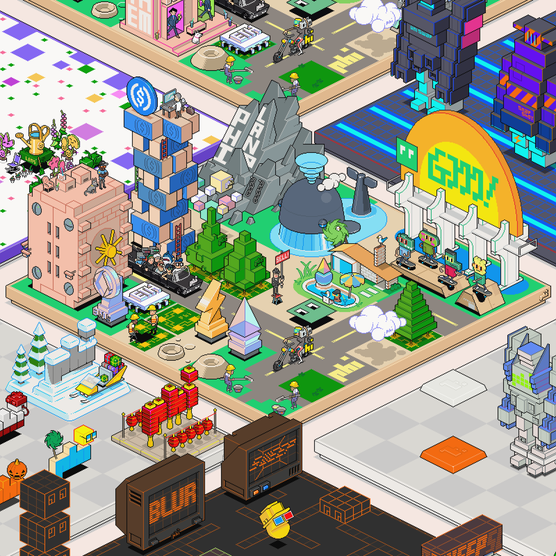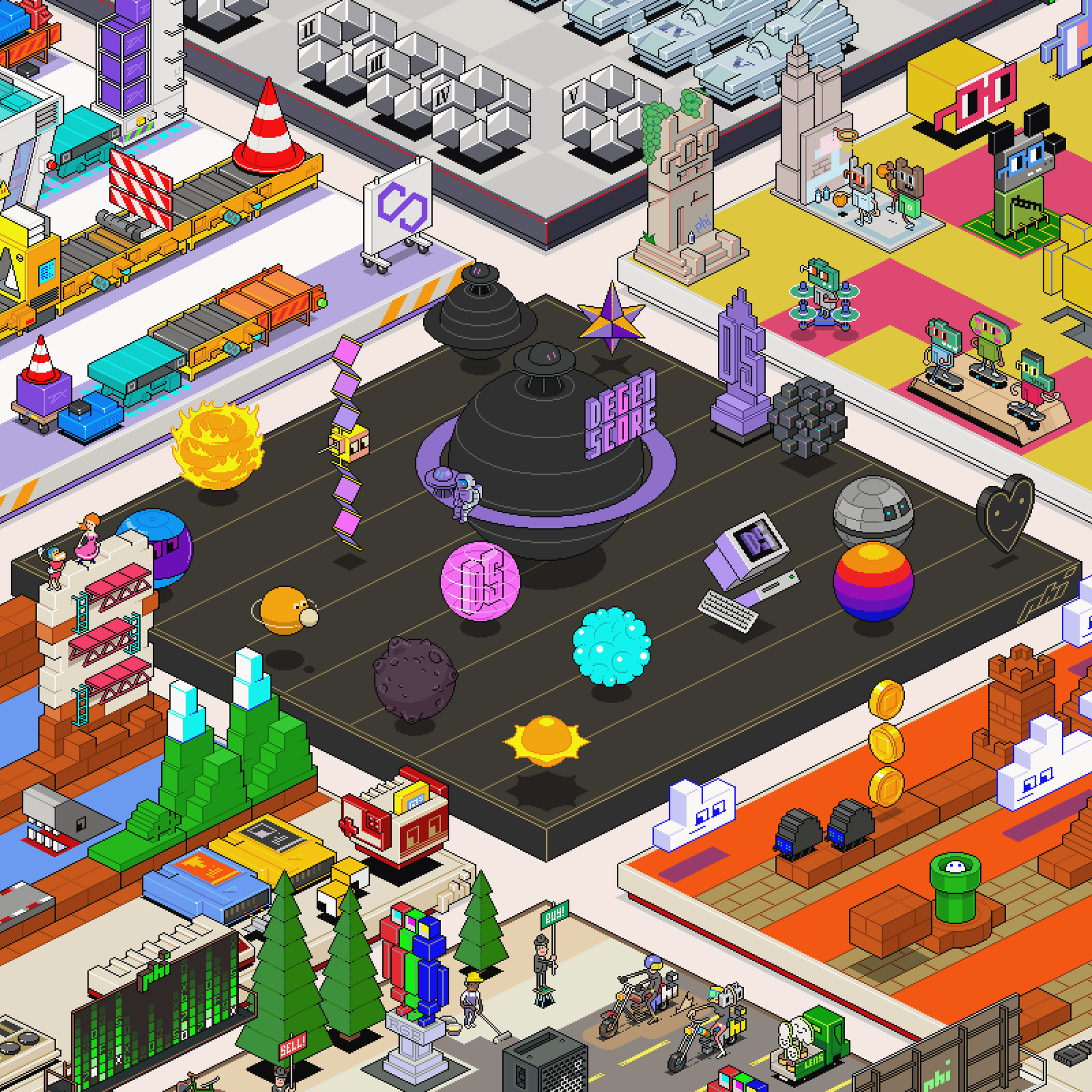 Pixel art print by eBoy, featuring selected PHI lands.