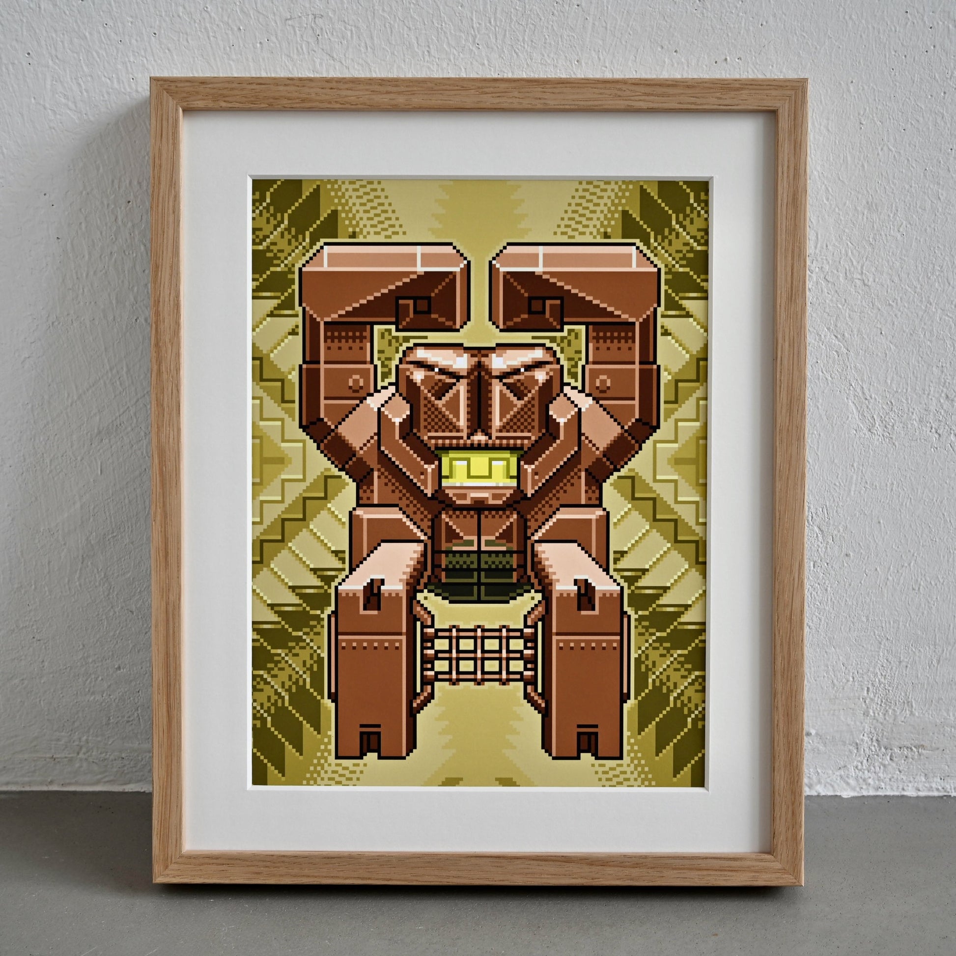 Framed pixel art print featuring 'PROOT Polk' by eBoy.